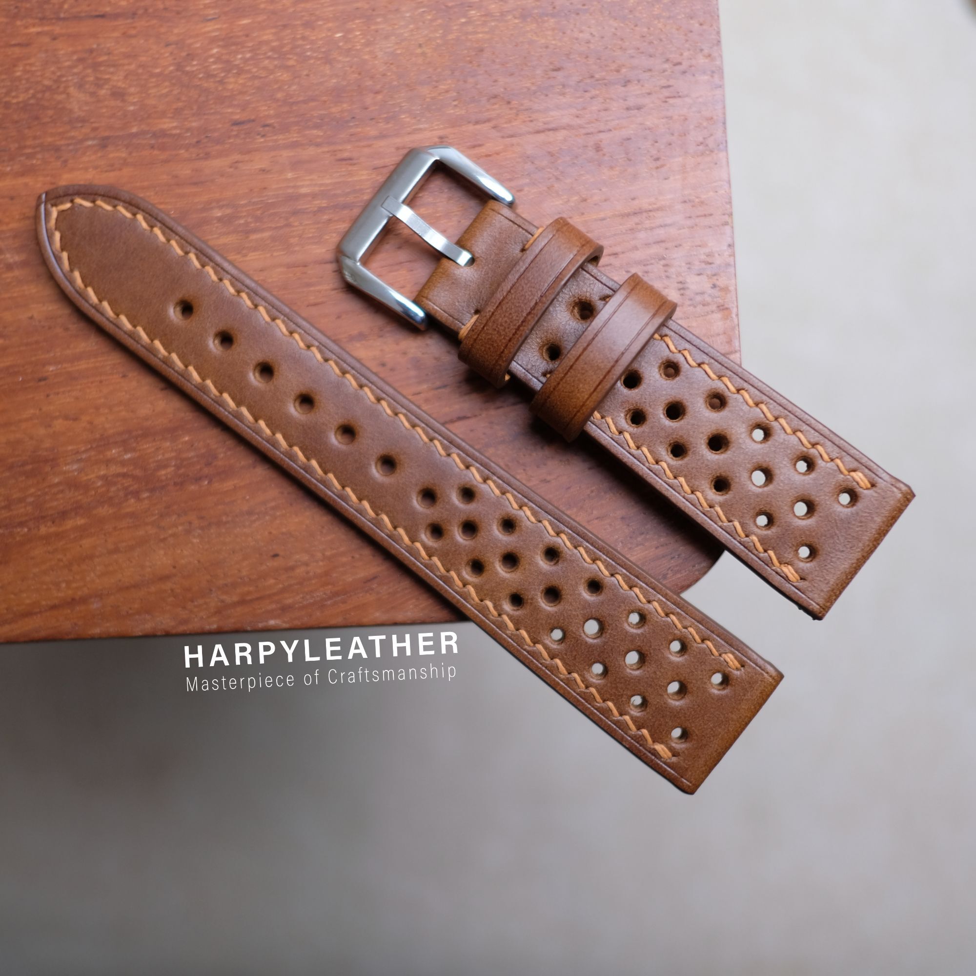 Dây Đồng Hồ Rally Da Museum Màu Nâu Hổ Phách